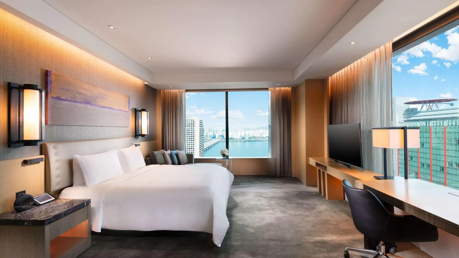 Certaines des 464 chambres climatisées d'Hôtel The Shilla Séoul sont meublées d'un canapé et d'un pupitre d'écriture, et équipées d'un mini-frigo bar et d'une cafetière/théière. Quelque chambre de cet établissement élégant dispose d'une salle de bain privée avec un sèche-cheveux et des draps de bain. Dotées d'un jacuzzi et d'un sauna, certaines salles de bains sont équipées d'un sèche-cheveux et des draps de bain. Cet hôtel offre des chambres qui donnent sur la ville.